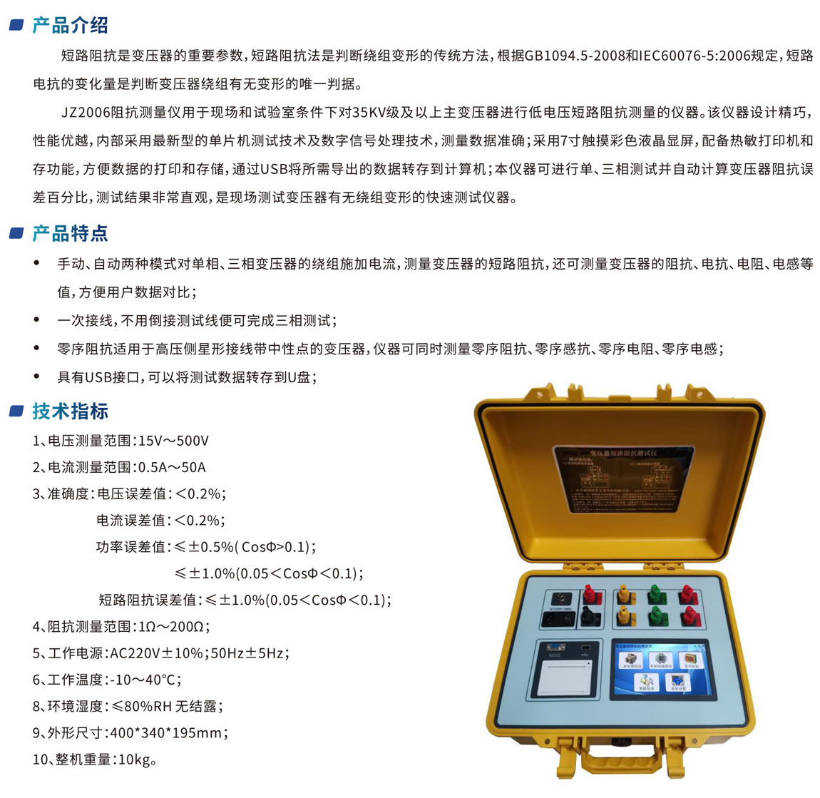 JZ2006 短路阻抗測試儀