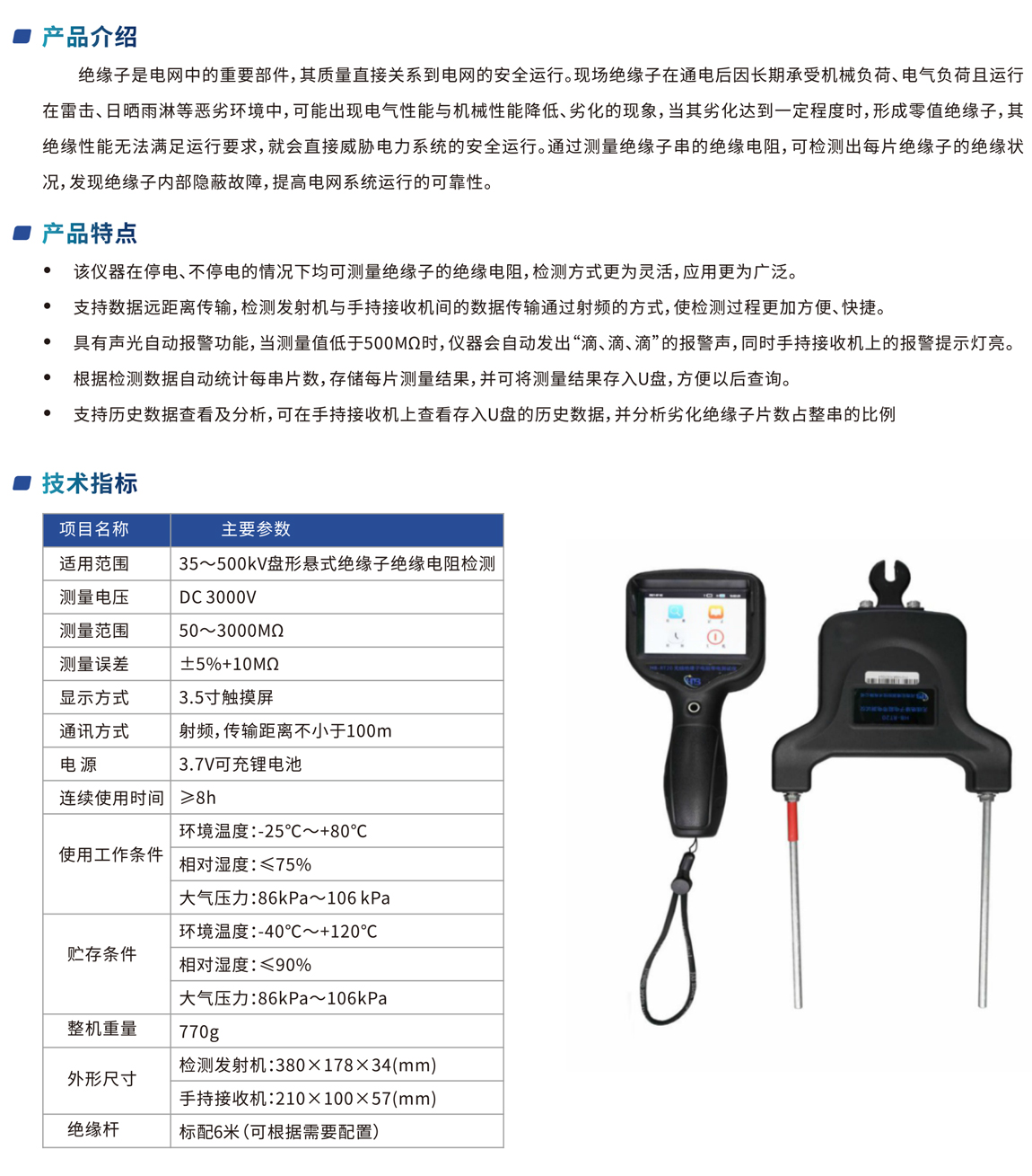 絕緣性能無法滿足運(yùn)行要求,就會(huì)直接威脅電力系統(tǒng)的安全運(yùn)行。通過測量絕緣子串的絕緣電阻,可檢測出每片絕緣子的絕緣狀