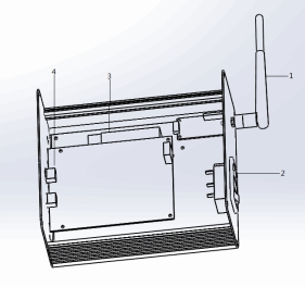 風機控制系統組成部件:1、改進后433M無線通訊模塊;2、交流電源插口;3、電源模塊;4、微型繼電器控制模塊